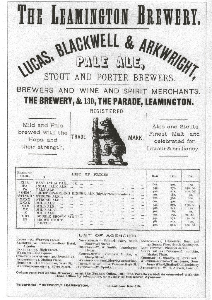 Brewery Adverts Lucas, Blackwell and Arkwright Advert Metal and enamel sign Lucas, Blackwell & Arkwright’s Leamington Brewery price list, 1896 Lewis, Haddon & Allenby Share this: Click to share on X (Opens in new window) X Click to share on Facebook (Opens in new window) Facebook Like Loading...