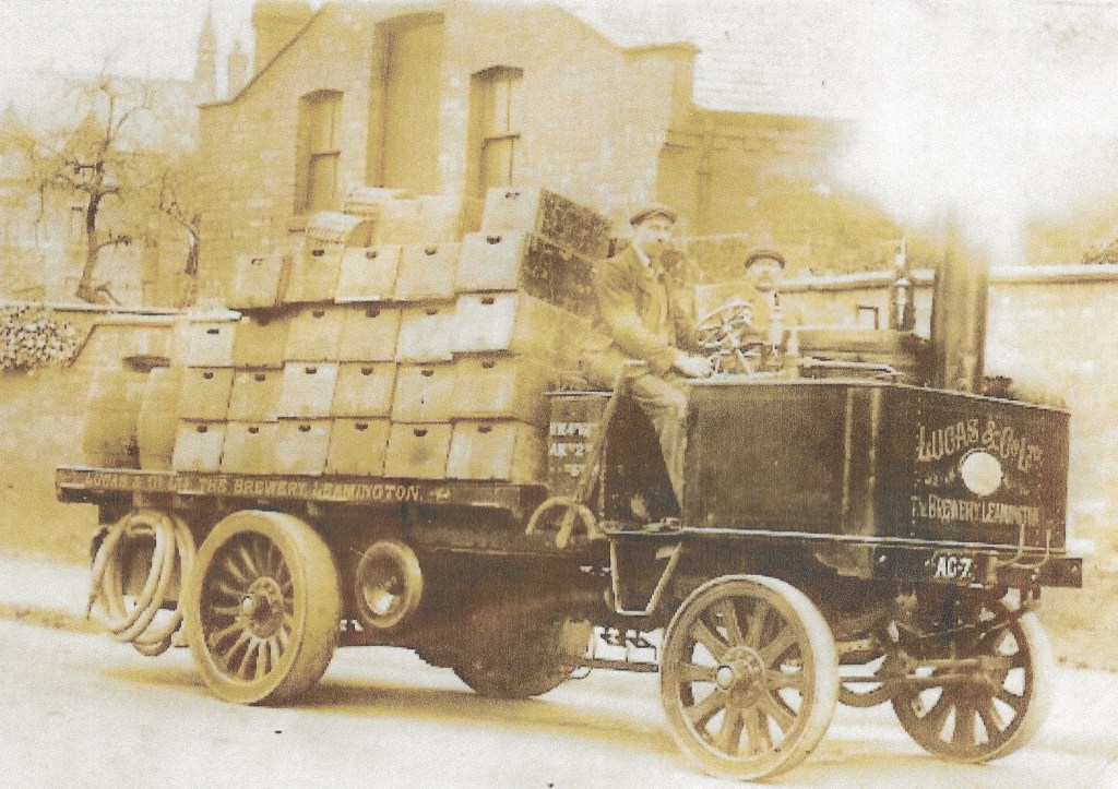 Thornycroft Steam Wagon AC7 registered to Lucas & Co Ltd, Leamington Spa on 13th September 1905 (4 ton 16 1/2 cwt, 5mph). The body was blue, the photograph appears to have been taken outside the brewery